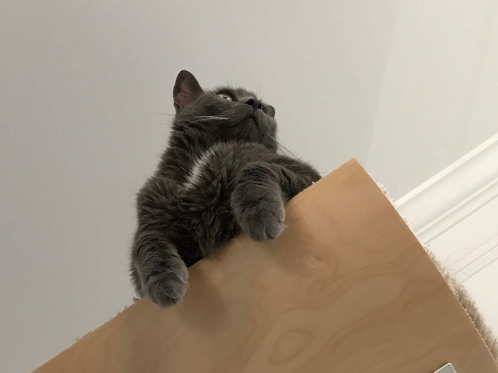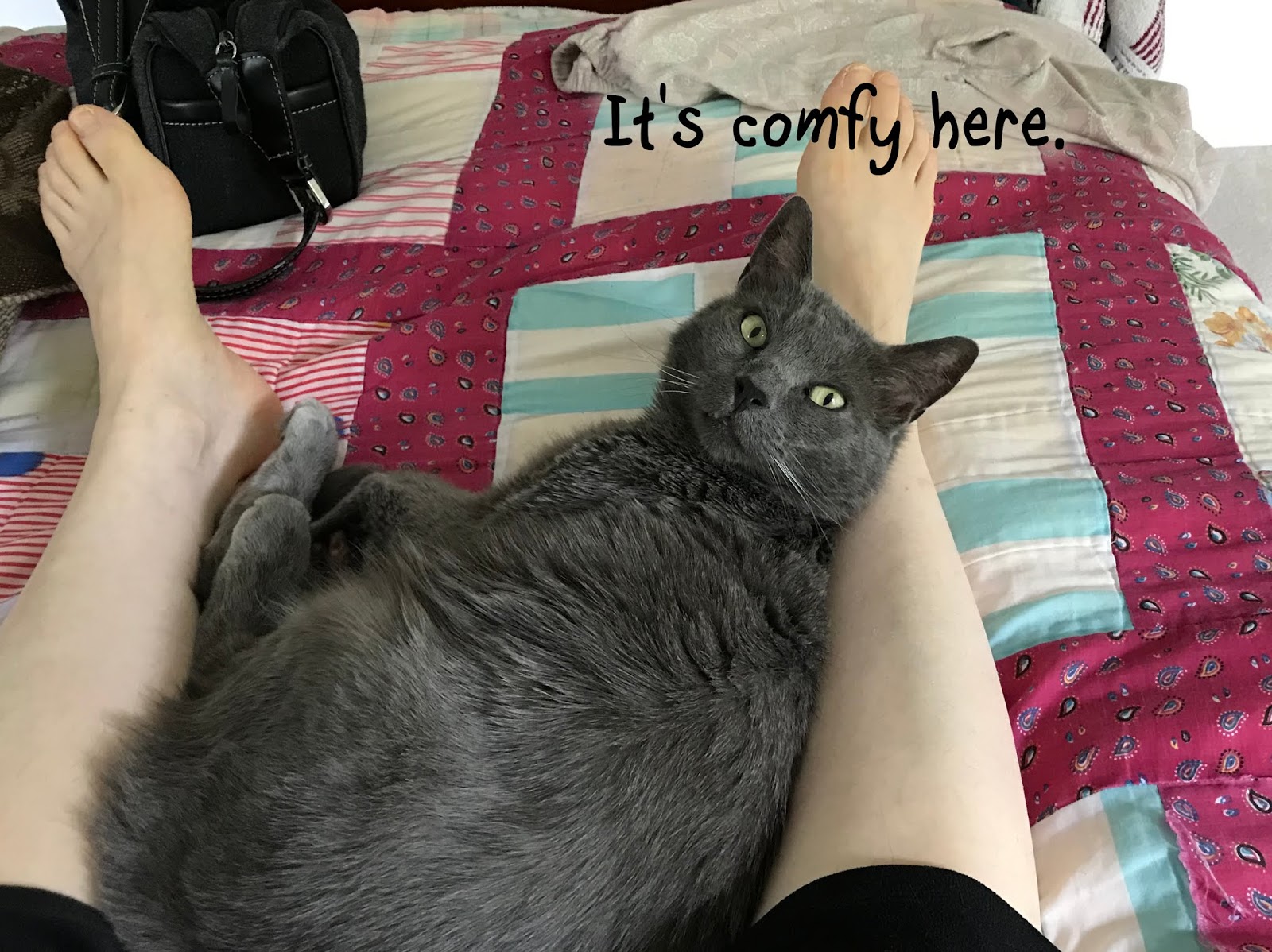 He hops on the bed and waits for me.